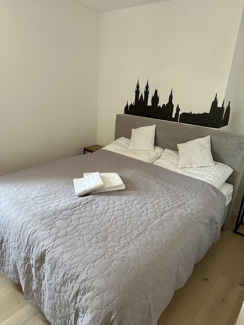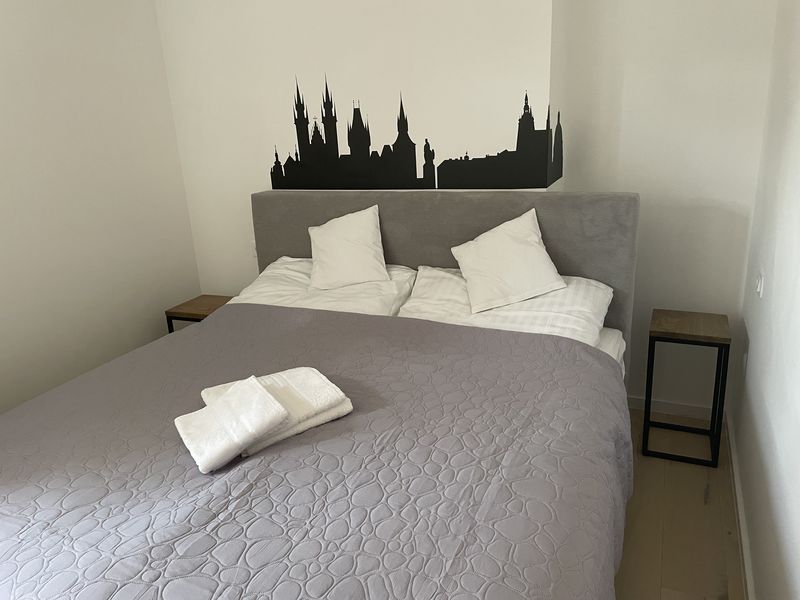 Hostům jsou k dispozici dvě ložnice s manželskou postelí a v obývacím pokoji pohodlný gauč, který lze rozložit na lůžko pro 1 dospělého, případně 2 děti. K dispozici je v případě potřeby dětská postýlka. Dále k apartmánu náleží balkon a dlážděná předzahrádka s posezením pod bioklimatickou pergolou.